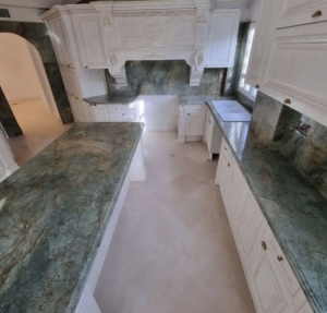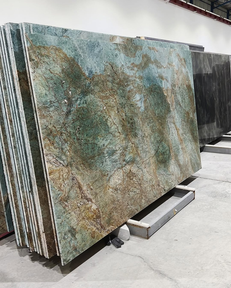 Turquoise Granite is an exotic natural stone known for its captivating blend of turquoise-blue and green hues, accentuated by dynamic gold and rust-colored veining. With its impressive durability and natural resistance to heat, scratches, and wear, this granite is ideal for high-end kitchens, bathrooms, feature walls, and outdoor applications.